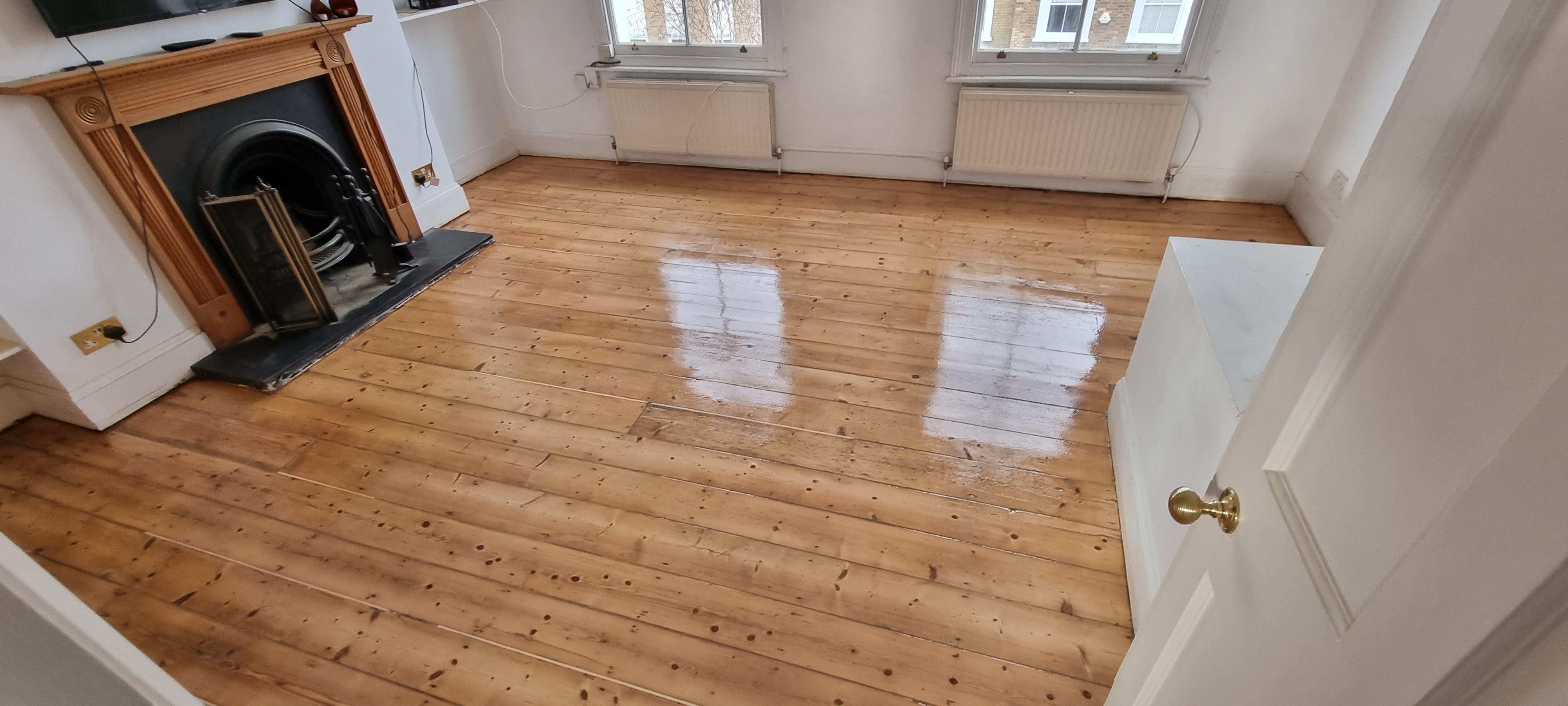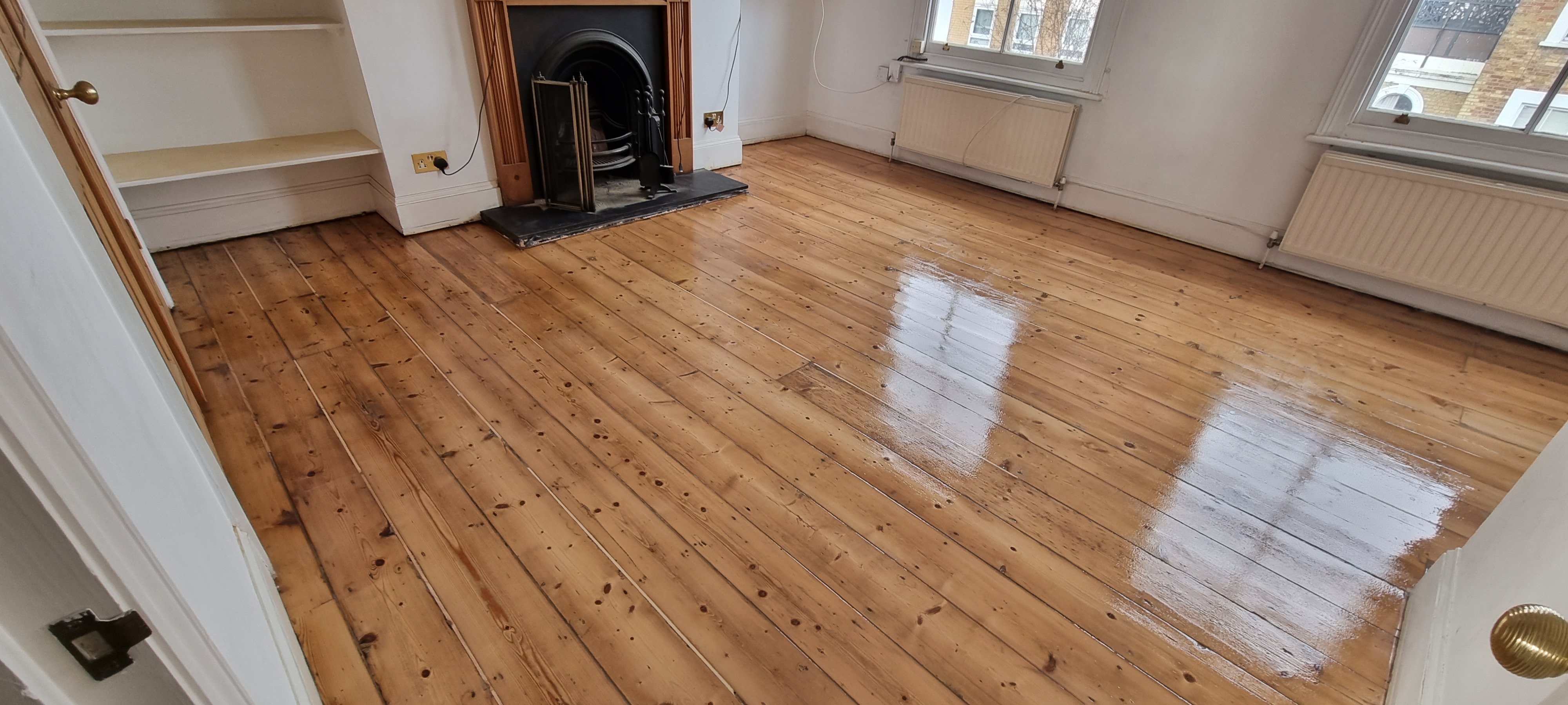 This was a pine floorboards job in Islington. The floor had seen a lot of use and the old finish had started to break down in patches. We sanded it back, sorted the gaps, and applied a lacquer finish, which gives a hardwearing protective layer on top. The client wanted something that would hold up well to daily use.